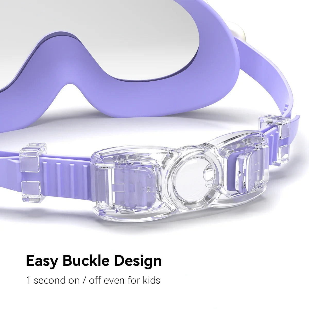 SunnySnap™ goggles use a snap-lock buckle so kids can put them on and take them off themselves — no tangled straps, no painful pulling.